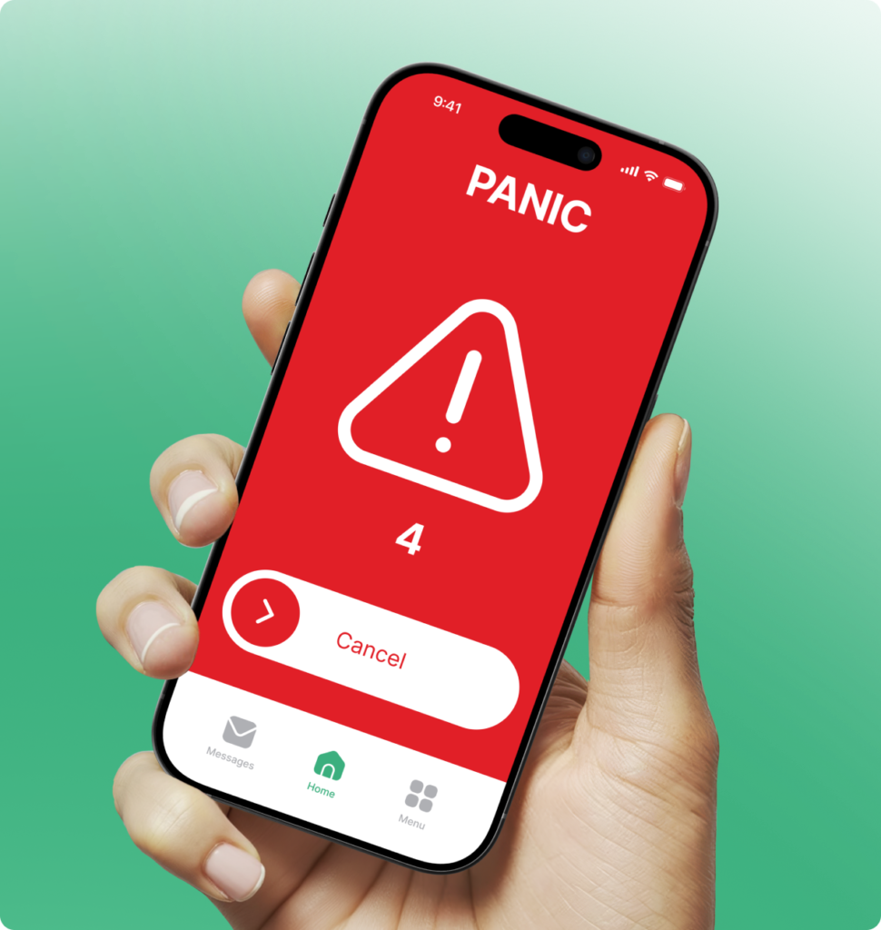 Instant help when needed. One-touch panic button connects directly to the emergency response team. -