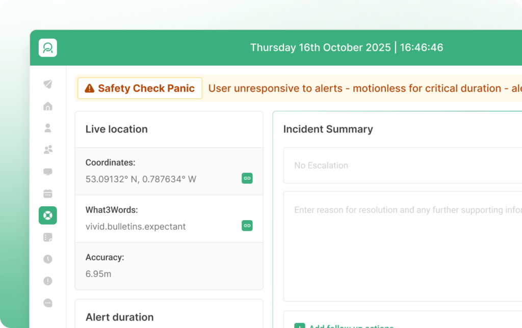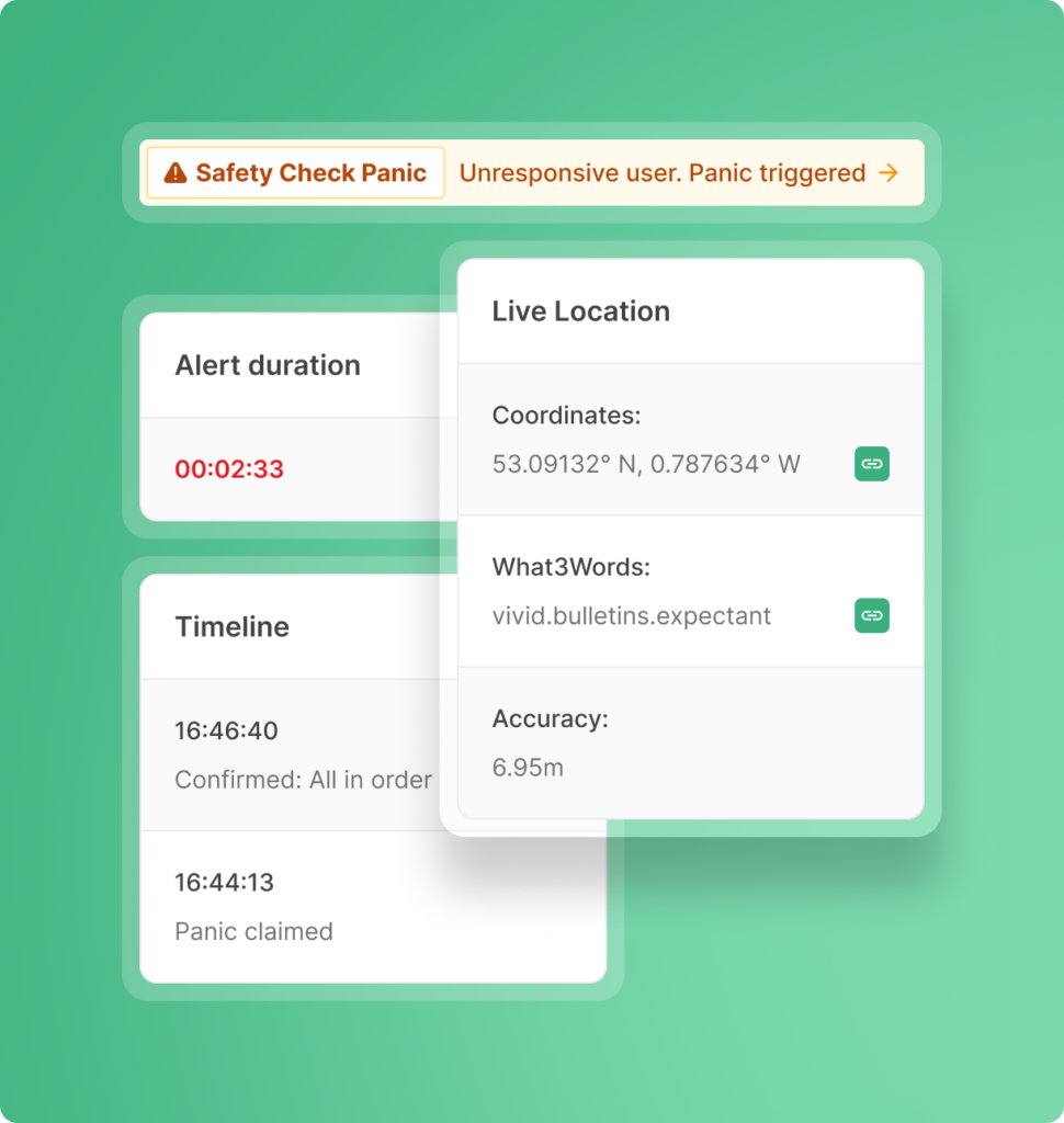 Our monitoring centre responds to all panic button activations within 10 seconds. Response includes immediate phone contact with the worker, location verification, and emergency service coordination if needed. All monitoring staff are trained in emergency protocols and work exclusively on worker safety responses.